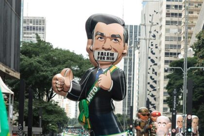 Ato resgata tradição dos bonecos infláveis e mostra Bolsonaro censurado na Paulista